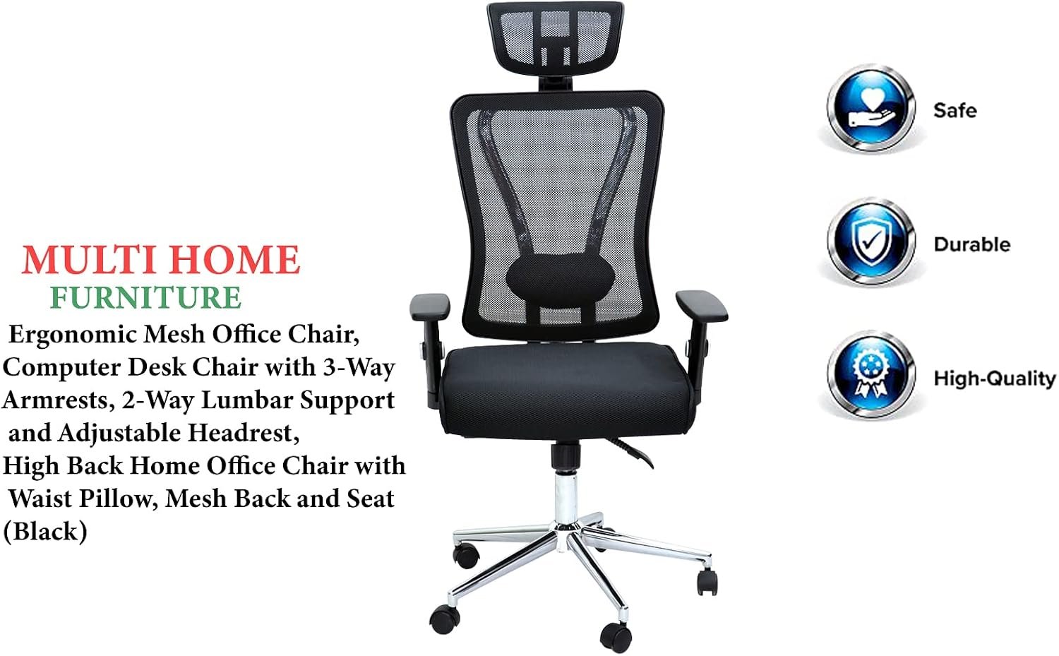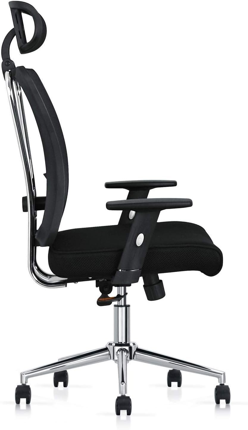 Durable Chrome Frame & Base: Heavy-duty chrome steel back frame and strong base for stability and strength. Designed as an orthopedic chair for work or home office chair, supporting up to 110 KG.