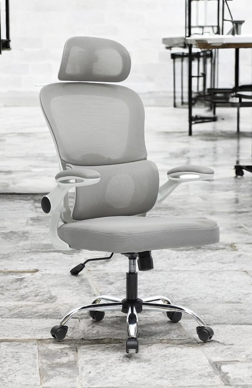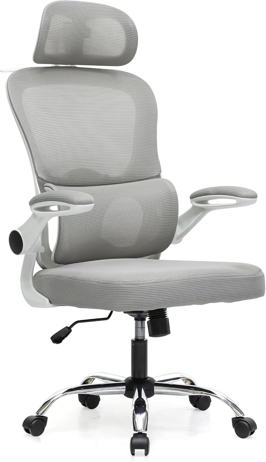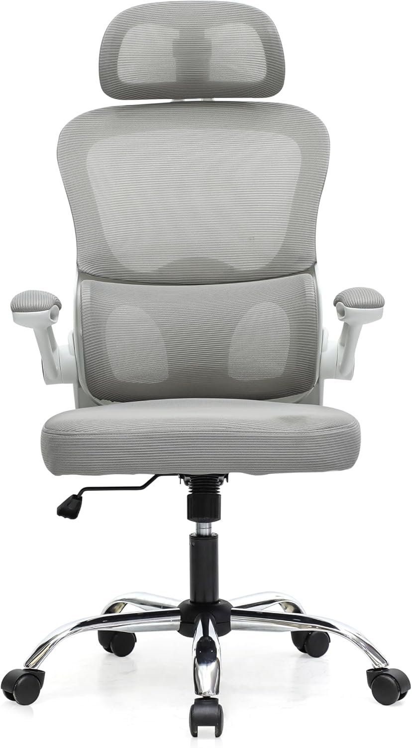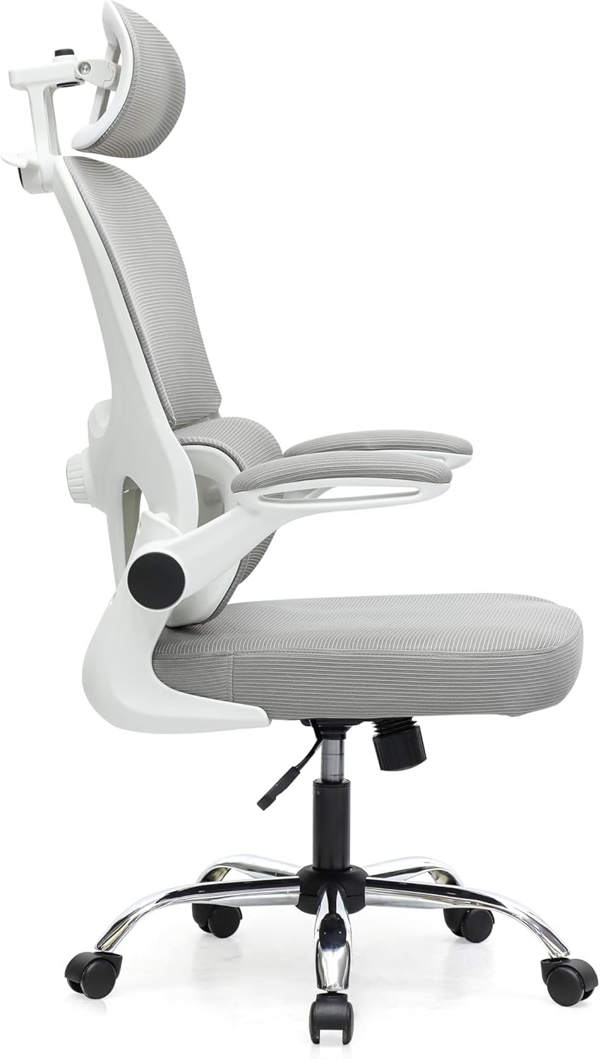 【Mesh Computer Chair】This Mesh Computer Chair, even if you need to sit for a long time, the leg pressure is very small, and it can also protect the back spine. Matched with high-density foam padding, it is soft and not easily deformed. 【Space Saving】Flip-up Arms to meet different needs, you can push the office chair directly under the desk to use more area. 【Multi Function】Pneumatic seat height adjustment; Tilt lock function(angle adjustable); 360-degree swivel; Solid rolling silencer casters for smooth movement. 【Easy to Assemble】It can be easily assembled using the simple tools included with the package, and a detailed installation manual is included. It is easy to set up and can be done in a short time. 【Ergonomic Office Chair】 Its designed with a human-oriented ergonomic construction provides comfortable support to help you keep a relaxed posture during a long time working. Easier to disperse pressure and relieve muscle fatigue.