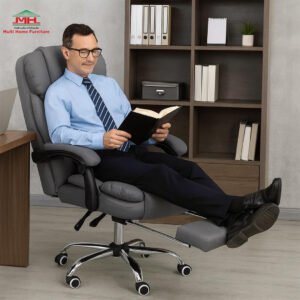 Designed to deliver exceptional comfort, support, and adjustability, the Multi Home Furniture Grey Gaming Chair and Office Chair for Home is a must-have for gamers, students, and professionals. This high-performance ergonomic chair features a fully reclining backrest, adjustable headrest, built-in footrest, and soft leather seat, making it ideal for long gaming sessions, home office work, or studying.