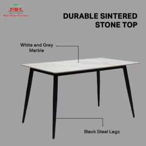 Transform your dining space with the Multi Home Furniture Grey Marble Dining Table Set 4 Seater, featuring a sleek sintered stone marble table top and sturdy black steel legs. Designed for everyday use and special gatherings, this dining table set combines durable construction with a contemporary aesthetic that elevates any dining room, kitchen, or living area.
