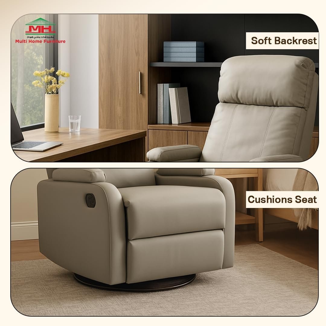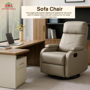 The chair’s soft PU leather finish, modern silhouette, and comfort-first design make it a go-to solution for those looking for a leather sofa, lazy chair, or swivel rocker chair. Whether used as a relaxing chair in your bedroom or a living room couch in your living space, it delivers performance, design, and comfort in every sit.