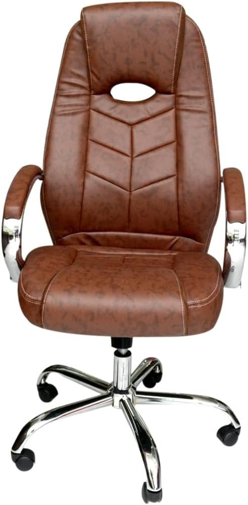 Multi Home Furniture MH-7066 Ergonomic Office Chair, Computer Desk Chair, PU material, Steel Structure, Smooth lumbar support with adjustable Height, Descent design, Shining Brown.