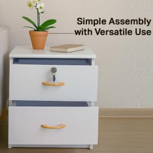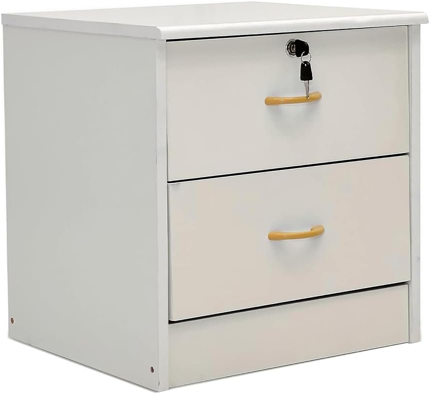 Multi Home Furniture Off White Wooden Bedside Table with 2 Drawers, Anti-Scratch Legs, Modern Side Table for Bedroom, Living Room Table & Hall – Compact Bed Side Table with Drawers Secure Key