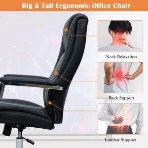 - Luxurious Leather Upholstery: Premium black leather offers a sophisticated and professional look, easy to clean and maintain.