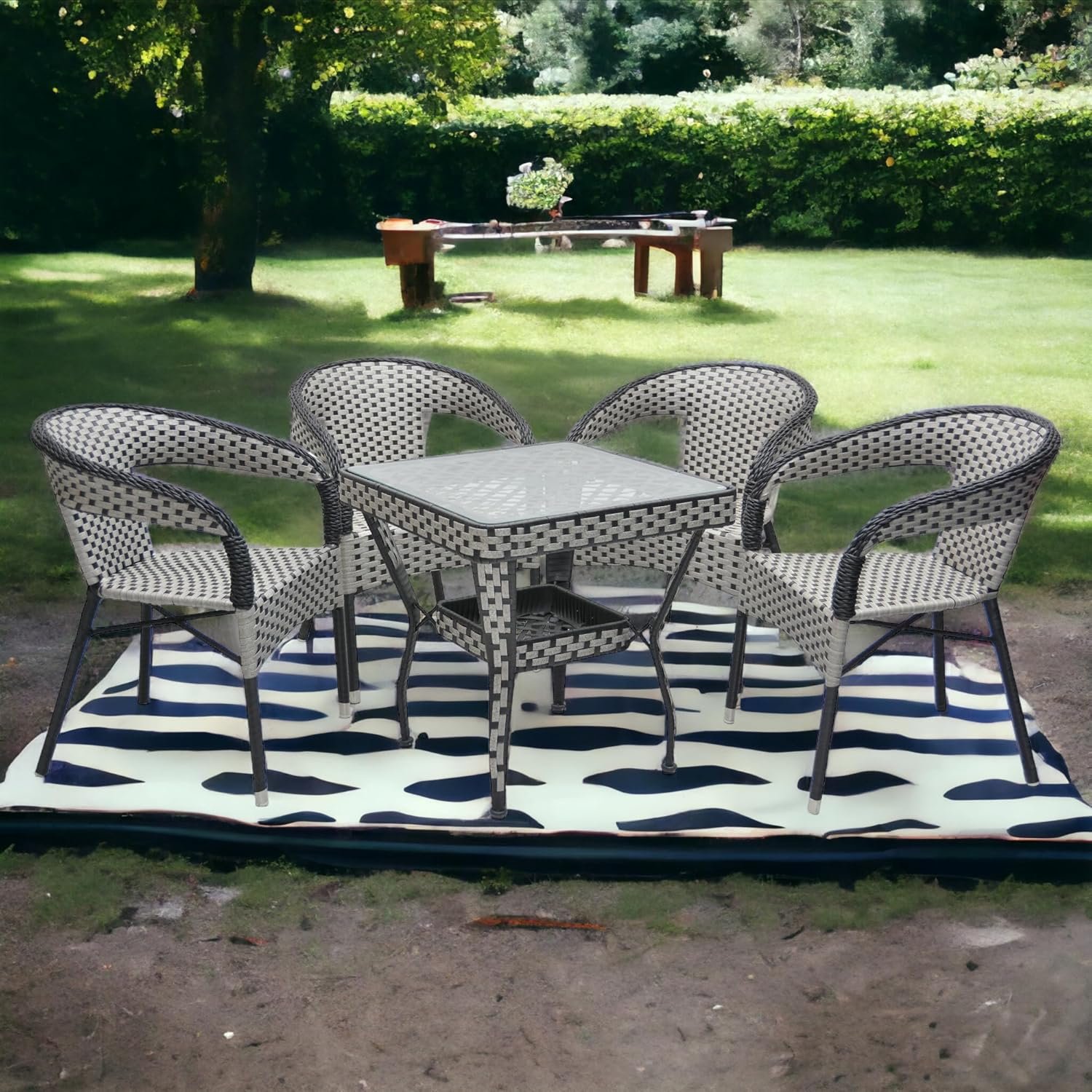 Introducing a beautiful Rattan Set- Table and Chairs from Multi Home Furniture Collection. 1 Piece white Table with Black glass and 4 Chairs Set: includes 1 Brown round table and set of 4 chairs, matching for any home decoration and any small space. Retro & Classic 4 Chairs: can be use in the kitchen, restaurant, office home bedroom desk chairs, meeting room chairs, occasional chairs for reception, party, wedding. Contemporary Round Table: round white table, the table also could be used office tea table, desk table. We provide an easy Assembly Manual Chart in the Box. The legs are very strong, and the strong frame is also made of high- quality materials, so you don’t have to worry about quality problems; the feet on the legs of the chair can improve the stability of the chair and avoid scratching the floor.