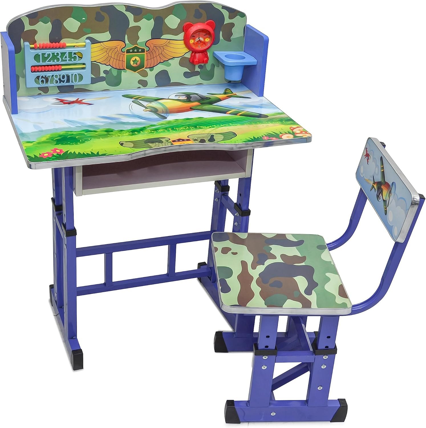 Multi Home Furniture Study desk & chair for kids Adjustable Kids Study Desk MH-ST41-Army and Chair Set, Educational Study Table and Chair set for Kids (Blue,Green)