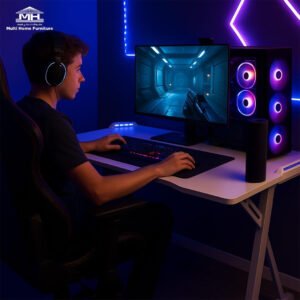 • Spacious Ergonomic Surface: Large 120×60 cm tabletop supports monitors and gear, ideal for a white gaming table, standing desk, or modern computer table.