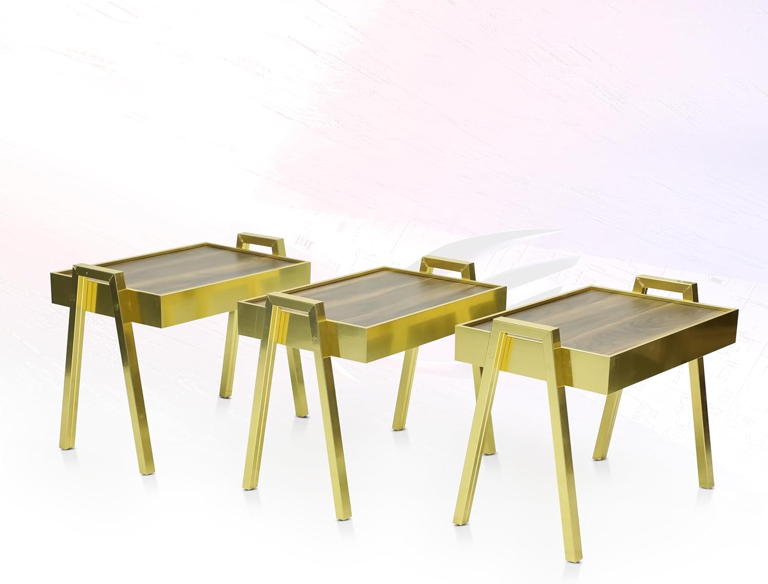 Crafted from high-quality materials, these tables are not only visually stunning but also built to last. The wooden tray tops are ideal for holding daily essentials, while the gold metal legs ensure strength and stability. The smooth, easy-to-clean surface guarantees that the tables stay looking great with minimal maintenance, making them a long-lasting addition to your home.