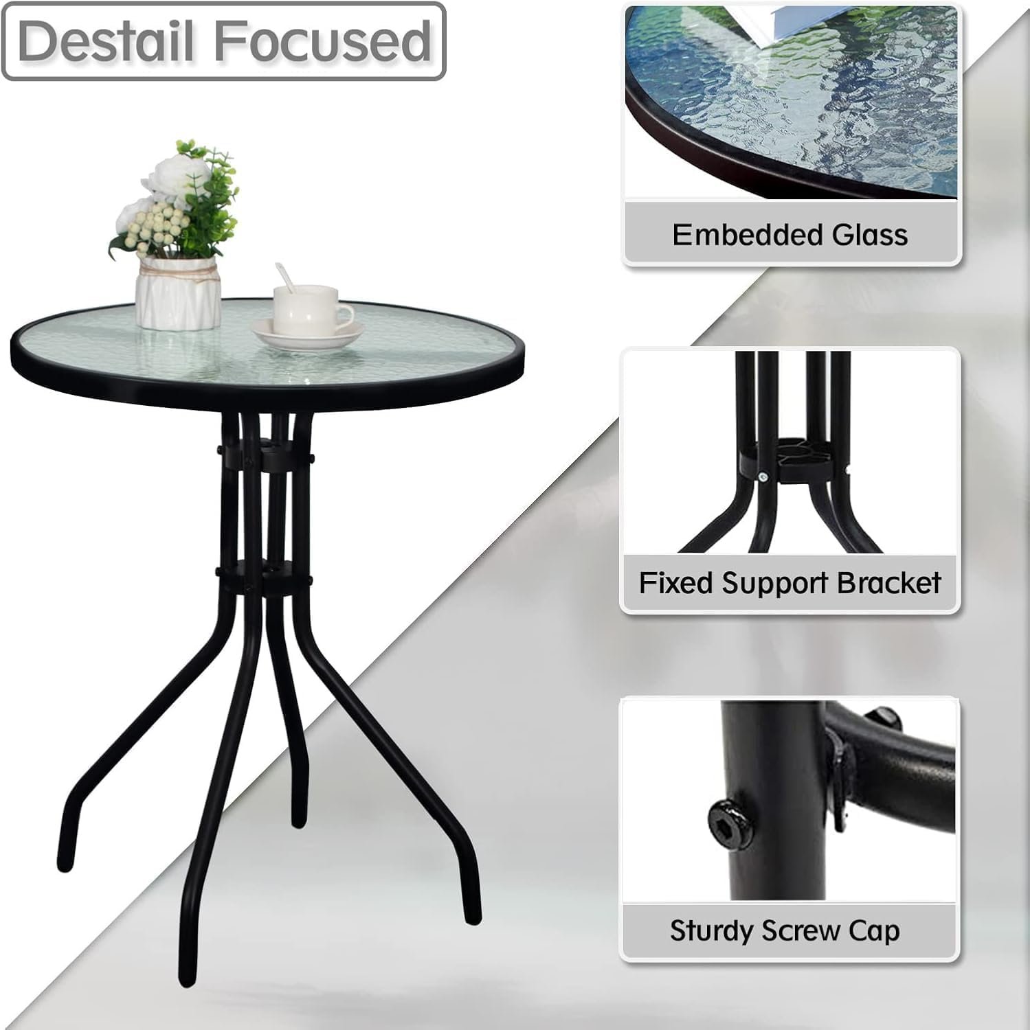 - DIMENSIONS: Perfect bistro-sized table with approximately 60 cm diameter top, ideal for outdoor dining and entertainment