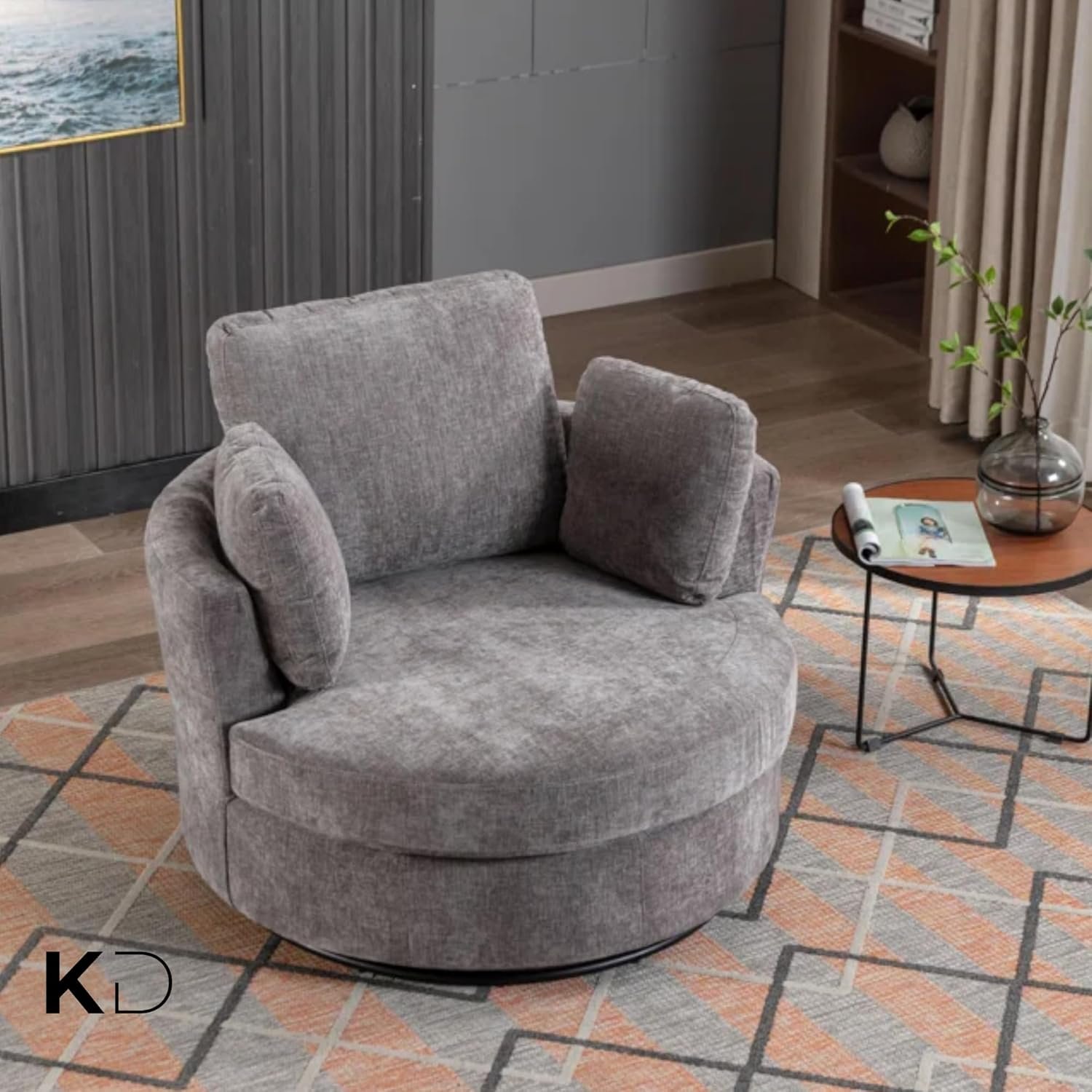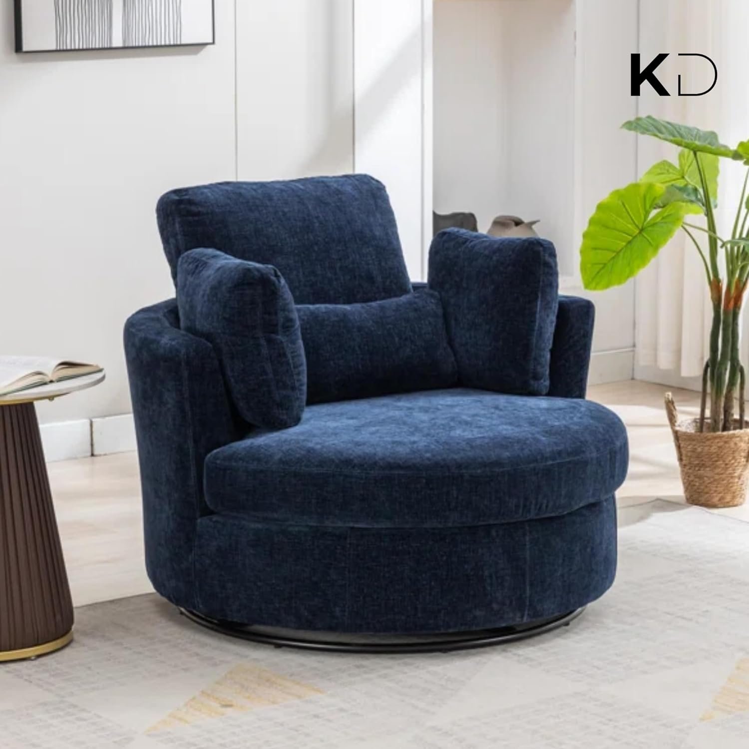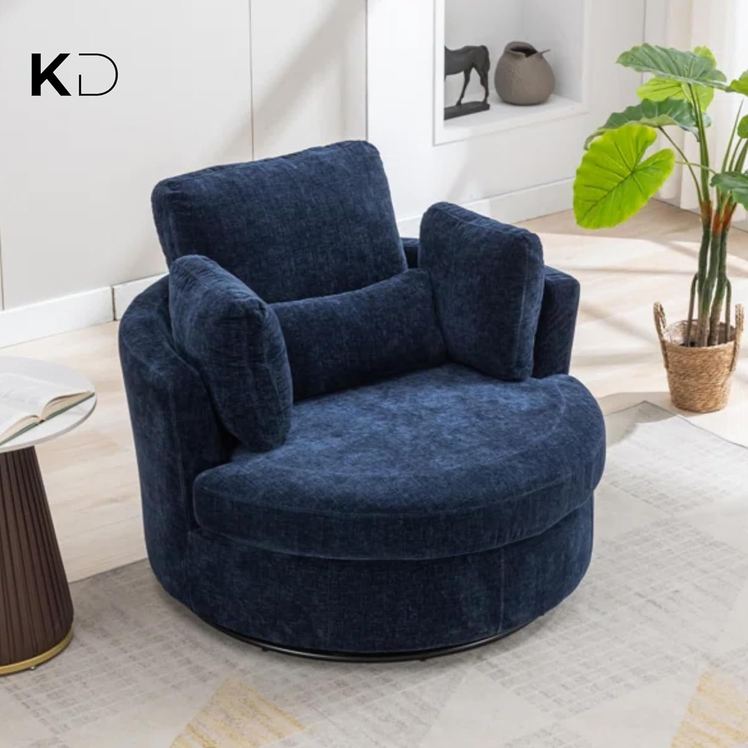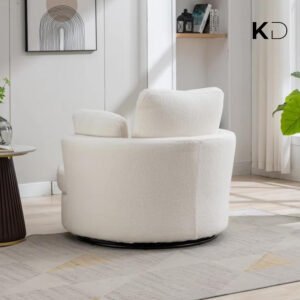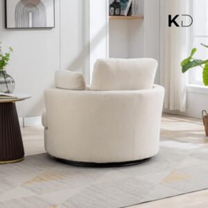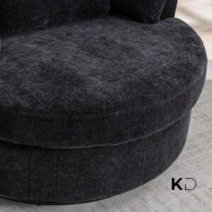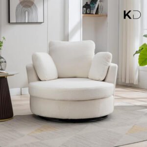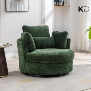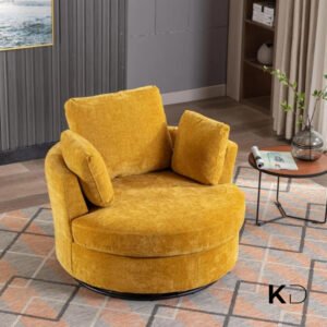 Sink into comfort with this oversized swivel accent chair, designed for modern UAE homes. The 360-degree rotating base and spacious round shape create the ideal spot for reading, relaxing, or entertaining. Crafted with soft corduroy fabric, dense foam cushioning, and a curved back for ergonomic support, it’s a luxurious addition to any living room, bedroom, or home office. Four plush pillows offer customizable lounging, while machine-washable covers ensure easy care. Simple to assemble and built to last, this chair merges form, function, and flair.