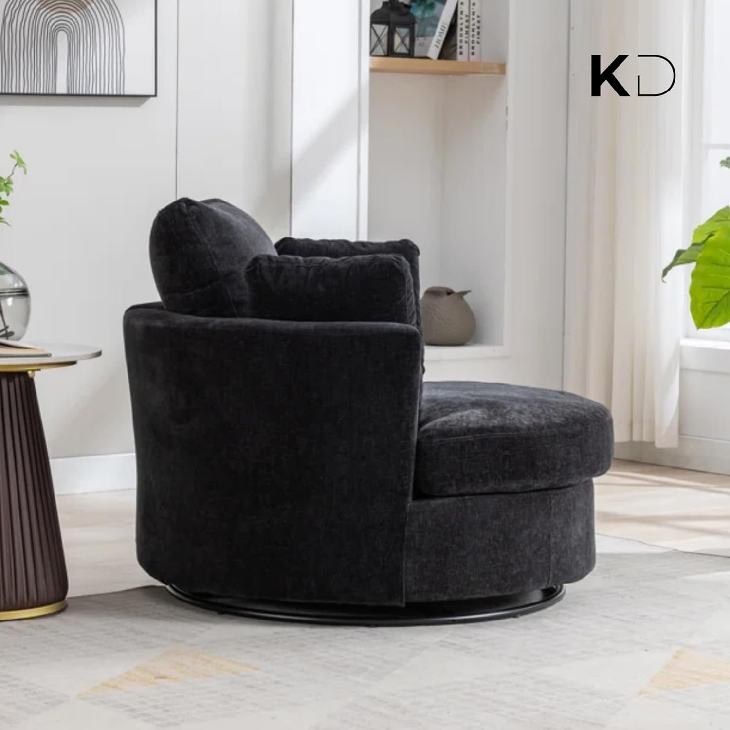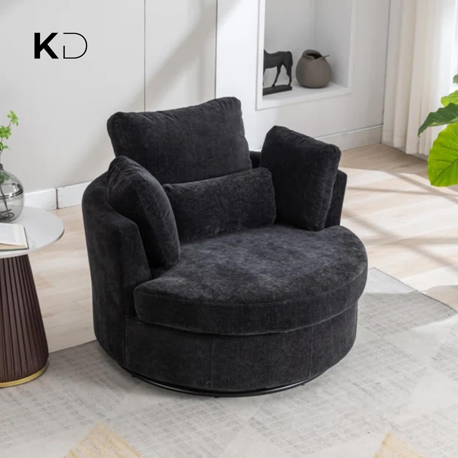 Oversized 360° Swivel Accent Sofa Chair | Plush Round Sofa Armchair with 4 Pillows, Curved Back, Modern Upholstery for Living Room furniture, Bedroom & Home Office