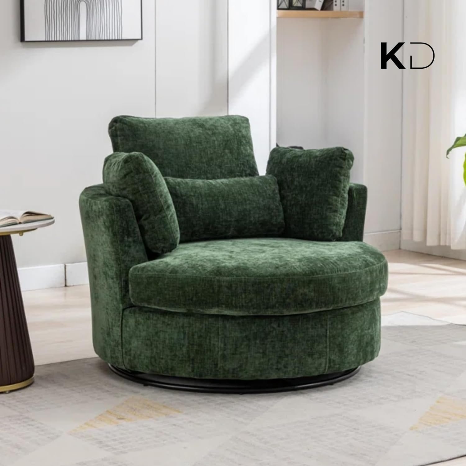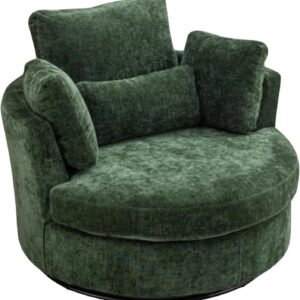 Oversized 360° Swivel Accent Sofa Chair | Plush Round Sofa Armchair with 4 Pillows, Curved Back, Modern Upholstery for Living Room furniture, Bedroom & Home Office (Black)