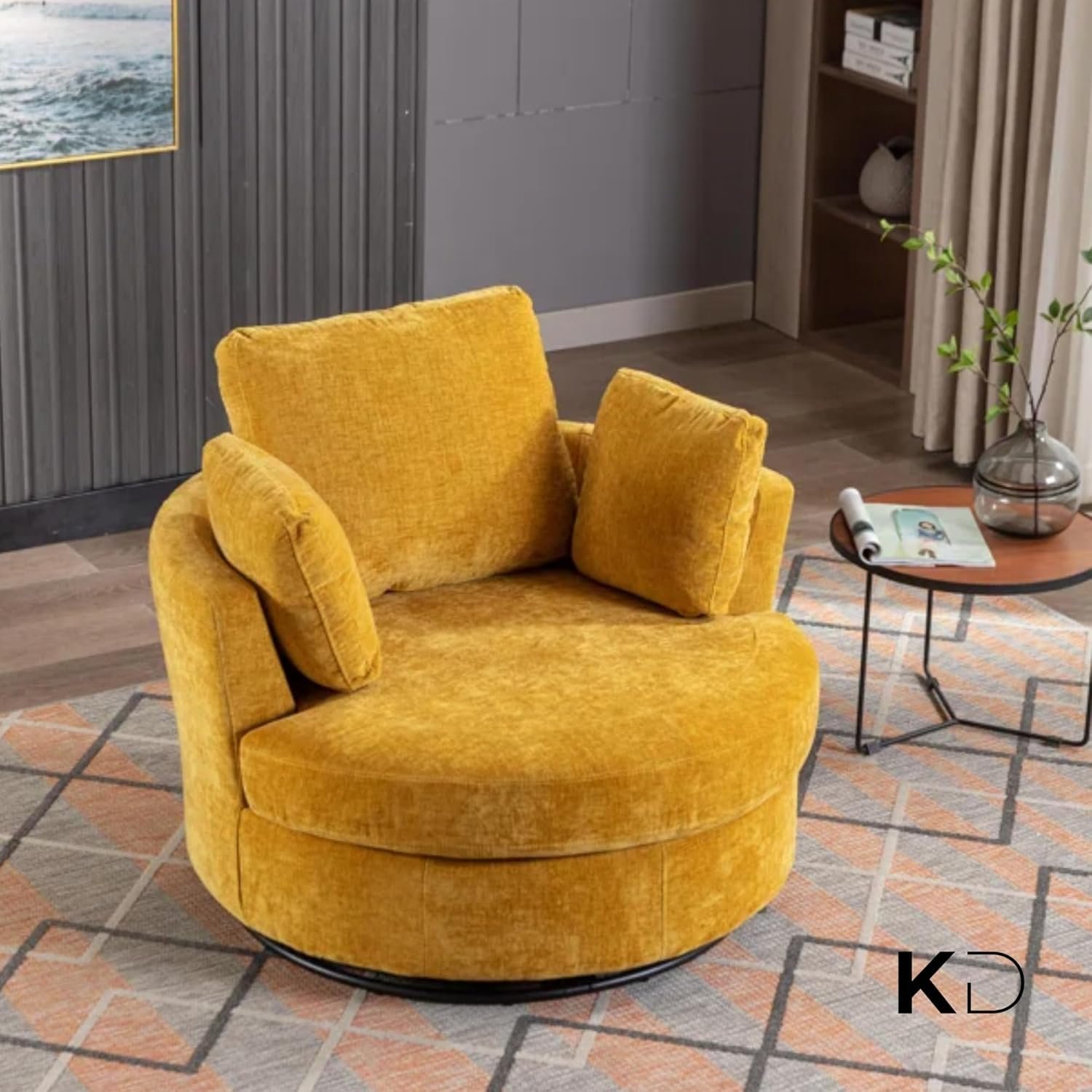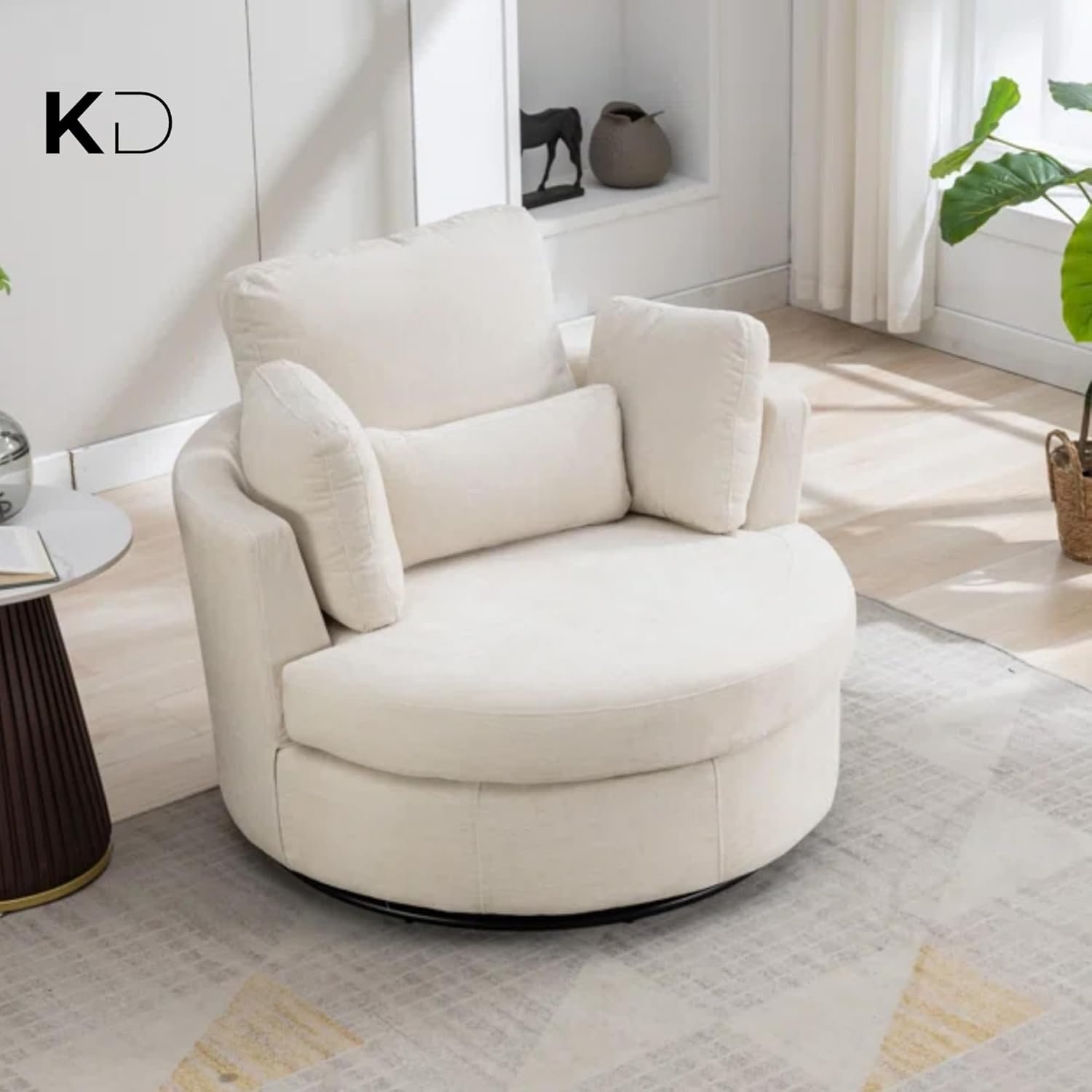 • 360° SWIVEL FUNCTION FOR FLEXIBILITY – Built with a rust-resistant metal base that allows smooth 360-degree rotation. It allows easy movement without lifting the chair and is suitable for compact living areas or multi-purpose spaces.