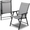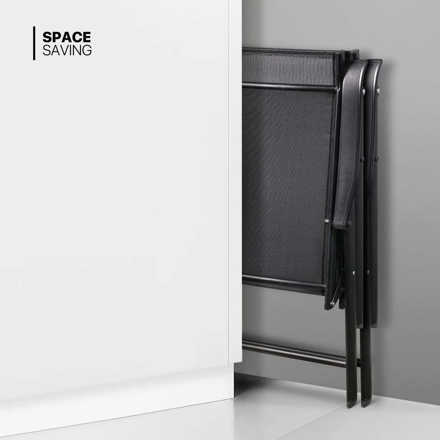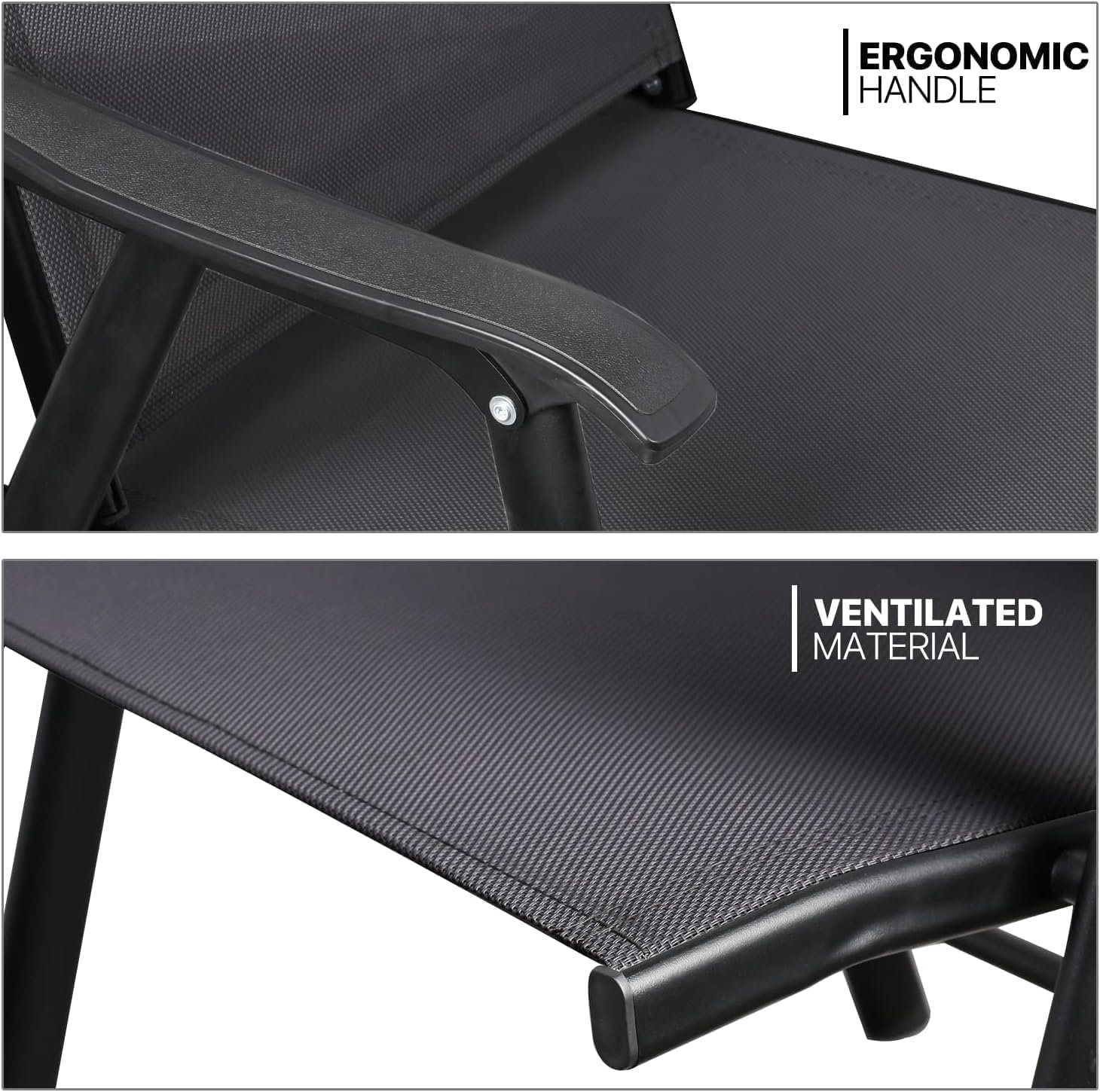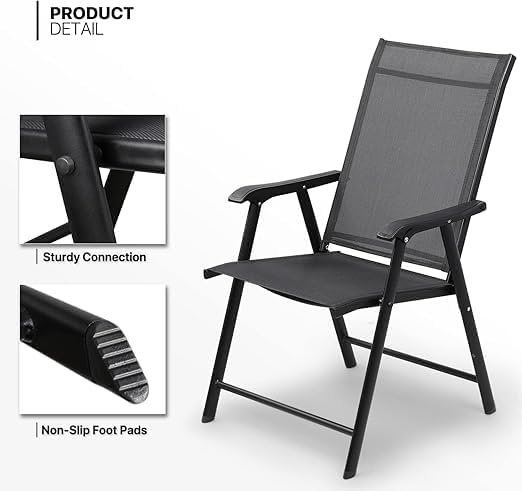 Patio Chairs, Foldable Patio Chair with Armrests and Breathable Seat Fabric, Outdoor Dining Chair for Patio, Pool Side, Backyard | steel frame with powder coating (Modern, Black)