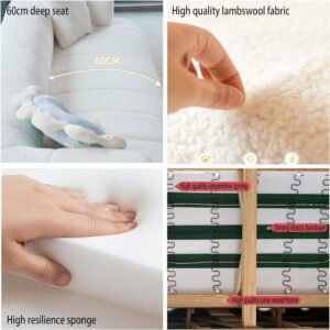 - Elegant Design: With its clean lines and contemporary design, this sofa set effortlessly complements both modern and traditional interiors. The lambswool’s natural color palette adds a neutral yet luxurious tone to your decor.Built with a solid hardwood frame, this sofa set is designed to last