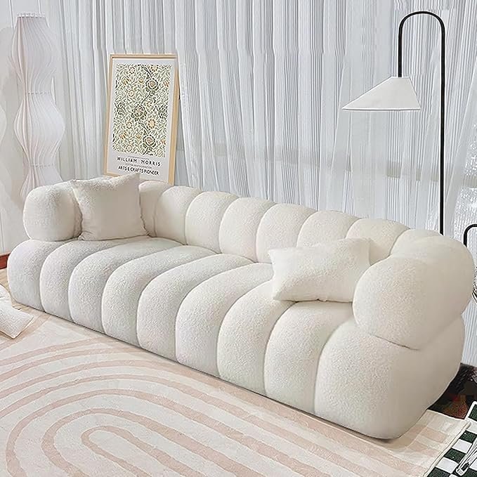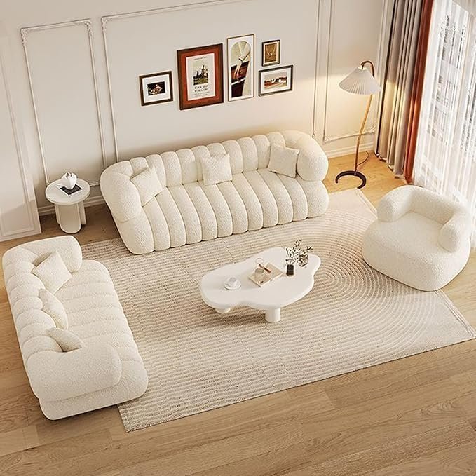 - Luxurious Lambswool Upholstery: Each piece in this sofa set is covered in premium lambswool fabric, known for its incredible softness, warmth, and durability.The sofa set is equipped with high-density foam cushions that offer excellent support while maintaining a plush feel.The lambswool fabric enhances the comfort, making this set perfect for long lounging sessions.