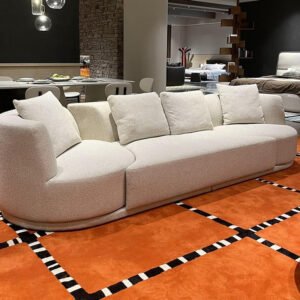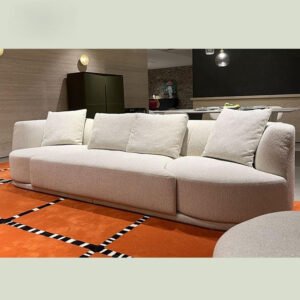 Introducing the Modern Curved Sectional Sofa by Poppins HOME, a bold fusion of comfort and contemporary design. Crafted for those who appreciate minimalism and high-end aesthetics, this designer sofa showcases a sweeping U-shape that naturally invites relaxation. The rounded silhouette gives it a smooth, sculptural appearance, making it a true centerpiece for any living space. Upholstered in plush beige fabric, the sofa’s surface is soft to the touch while offering excellent durability. With ample space for gatherings, it’s as functional as it is stylish. Whether you’re redesigning a modern loft or adding flair to your lounge, this sofa delivers luxurious comfort with architectural elegance. Perfect for modern apartments, penthouses, and luxury villas—make a design statement with Poppins HOME.