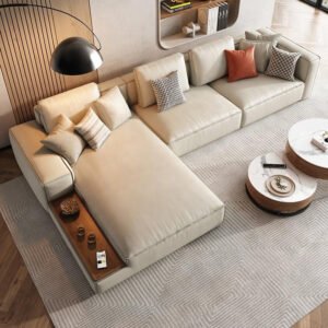 Indulge in the epitome of modern comfort with this exquisite sofa set. Crafted with meticulous attention to detail, it seamlessly blends style and functionality. The sleek, minimalist design features a spacious sectional layout with plush cushions, inviting you to sink into its embrace. Complemented by a harmonious colour palette of warm neutrals and accented with tasteful throw pillows, this sofa set effortlessly elevates the ambience of any living space. Thoughtfully designed with ample seating, it accommodates gatherings with friends or cosy family moments. Elevate your interior aesthetic with this sophisticated sofa set, a true masterpiece that redefines contemporary luxury.