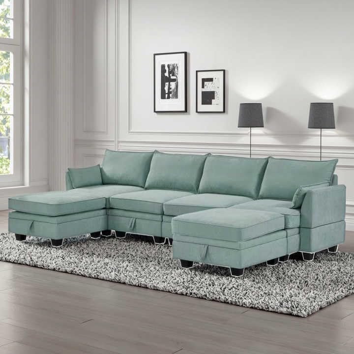 - Modern Design: Features a sleek U-shaped design that seamlessly fits into contemporary living spaces, providing ample seating for family and guests.