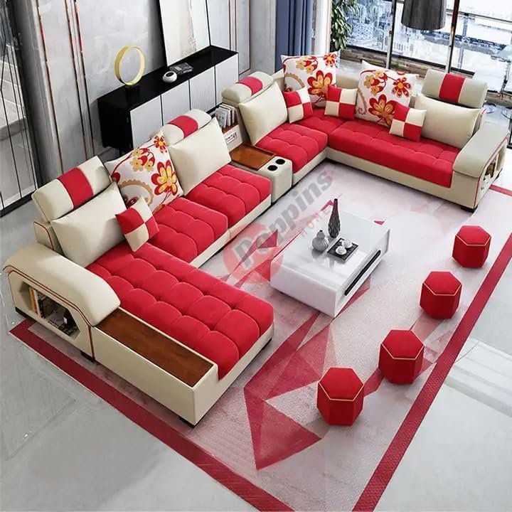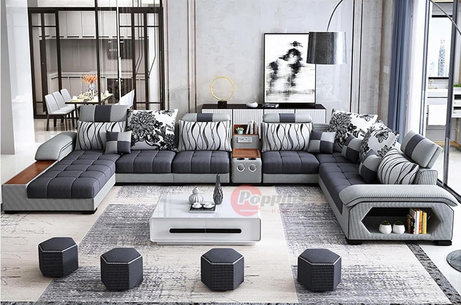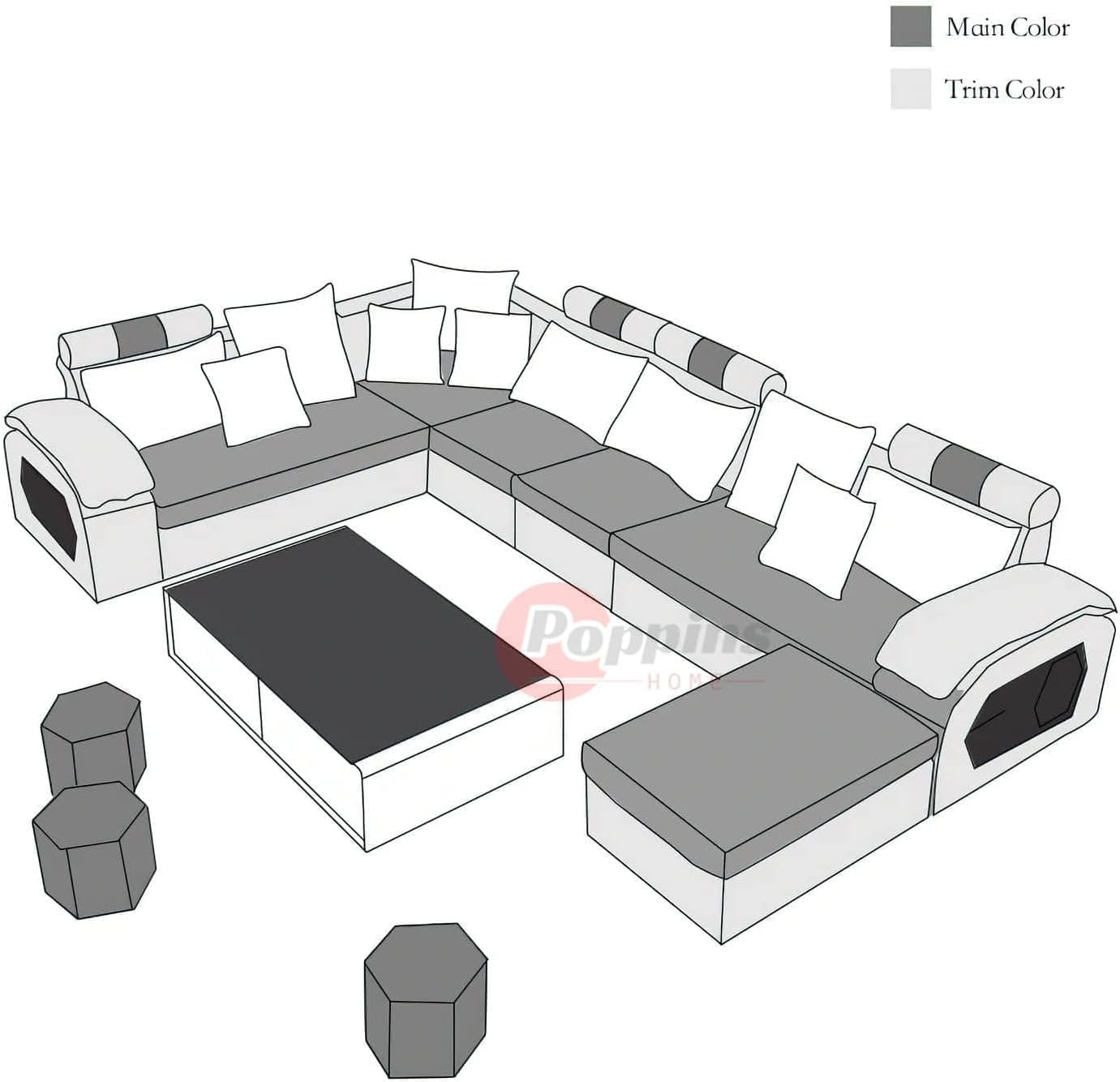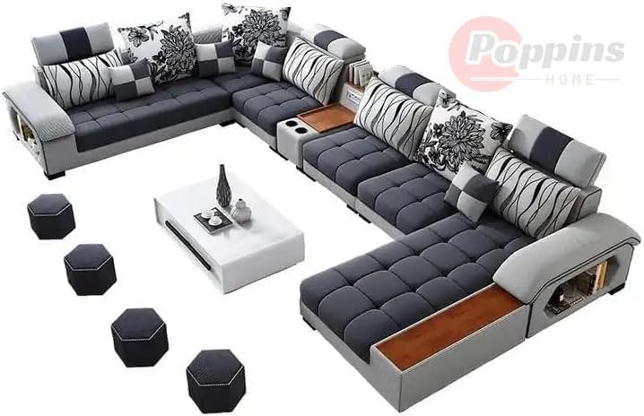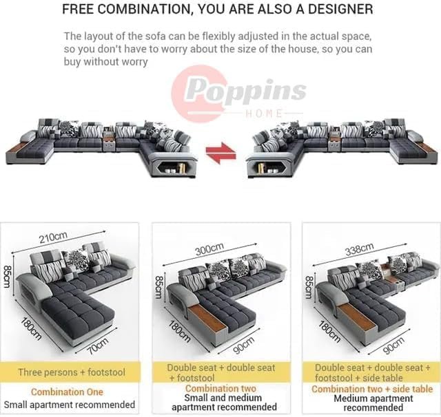 Poppins HOME Sofa set furniture new L shape modern simple furniture set design large sofa sectional combination sofa (Brown)