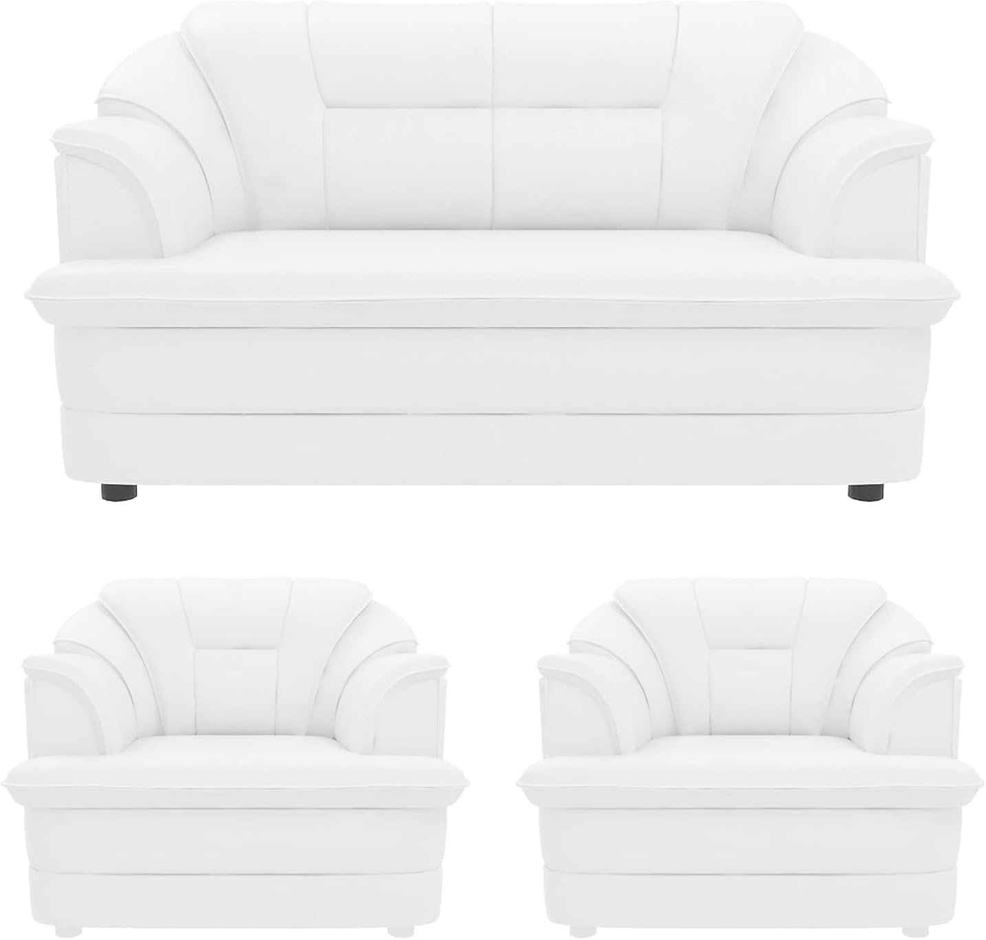 Poppins HOME Sofa Set in Lifestyle Leatherette and Polyurethane Foam Elevate Your Space with Distinctive Style (White, 3+1+1Seater)