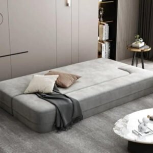 Keep away from open flames or high heat sources. Do not leave children or pets unattended near the sofa to avoid entrapment risks. Always follow the instructions for safe inflation, deflation, and storage of the sofa-bed.