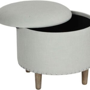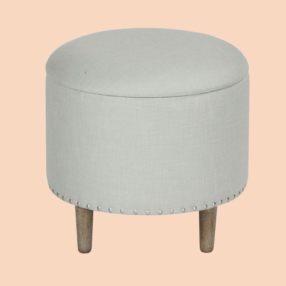 Round Linen Ottoman – Upholstered Ottoman or Bench, Multi-Purpose Seating for Living Room or Bedroom