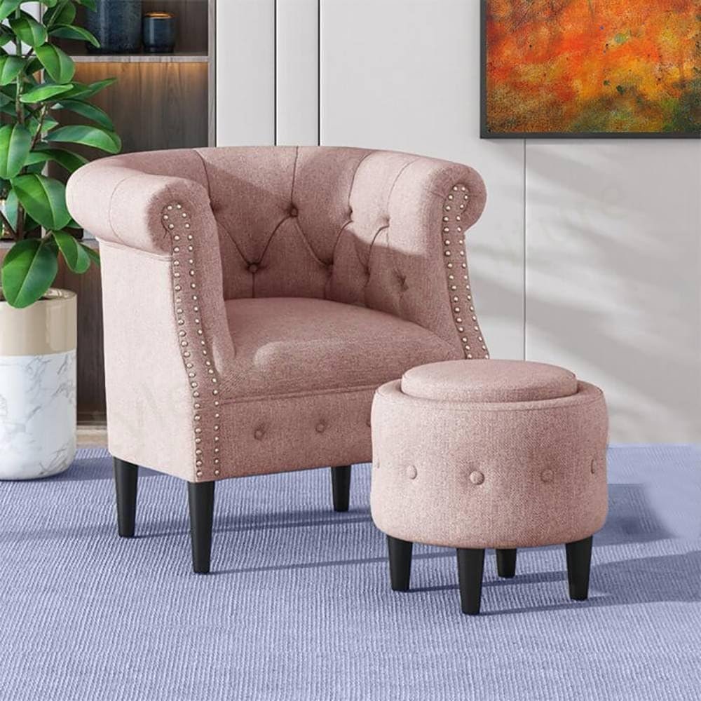 Tufted Chair with Round Ottoman – Stylish Upholstered Accent Chair, Custom Design for Living Room or Office