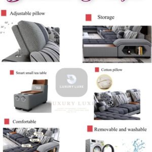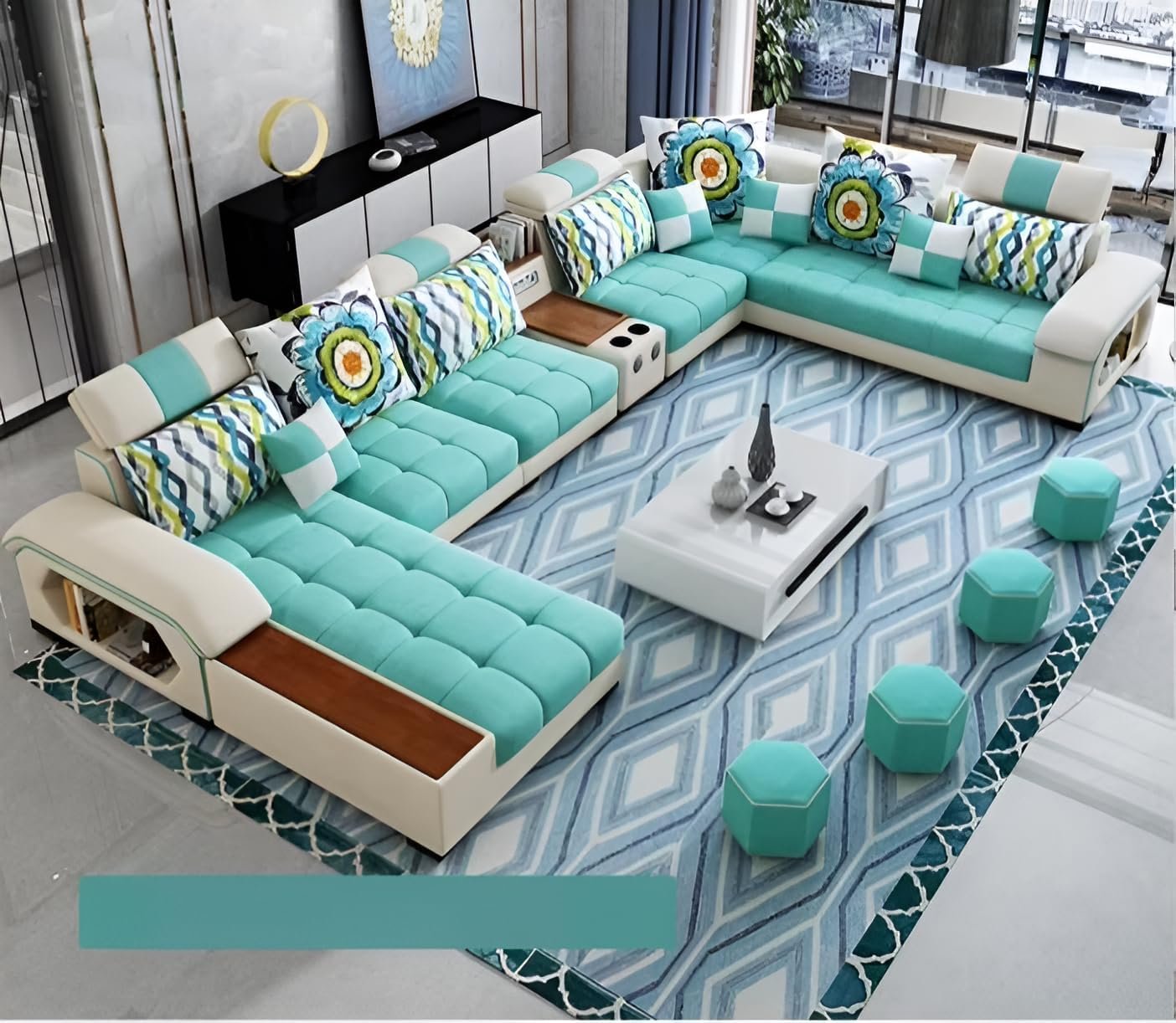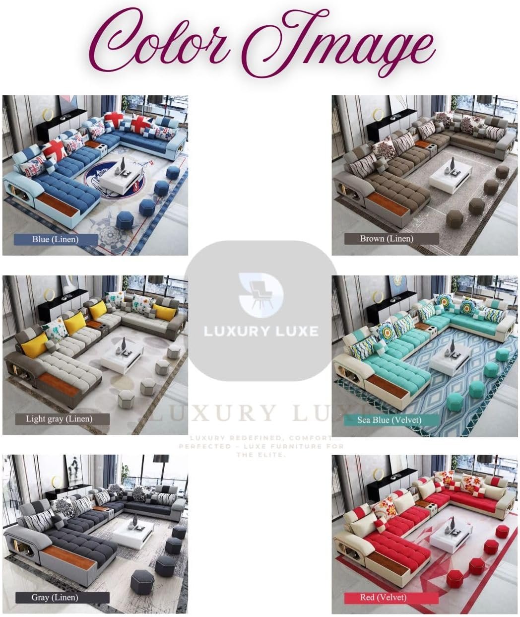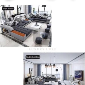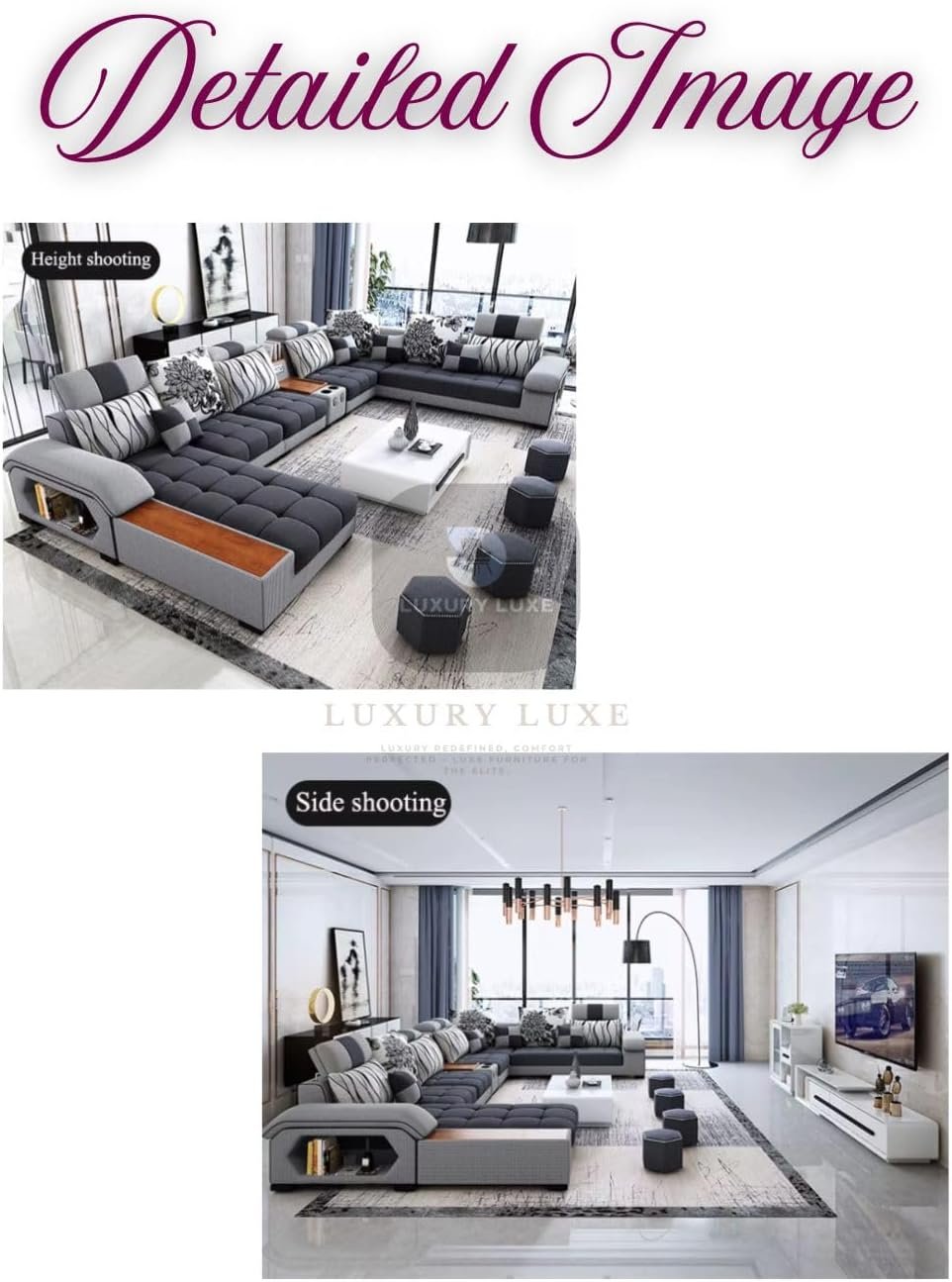 🌟 Luxury Luxe U-Shape 7-Seater Sectional Sofa – Modern Corner Sofa Set with Durable Fabric | Versatile Design for Spacious Living Rooms 🌟 Product Highlights ✅ U-Shape Sectional Design: Modular corner configuration for flexible room layouts (7-seat capacity). ✅ High-Density Foam Cushions: Engineered for supportive seating and long-term comfort. ✅ Reinforced Hardwood Frame: Sturdy construction with metal legs for stability. ✅ Stain-Resistant Fabric: Easy-to-clean material designed for everyday use. Product Description Enhance your living space with the Luxury Luxe U-Shape 7-Seater Sectional Sofa, designed for modern homes. This sectional sofa features a modular U-shaped layout, allowing customization to fit room dimensions. The sofa is crafted with a durable fabric upholstery and high-density foam cushions, providing balanced support for daily relaxation. The reinforced hardwood frame and metal legs ensure structural integrity, while the neutral-toned design complements contemporary decor styles. Ideal For: Spacious living rooms Family gatherings Customizable seating arrangements