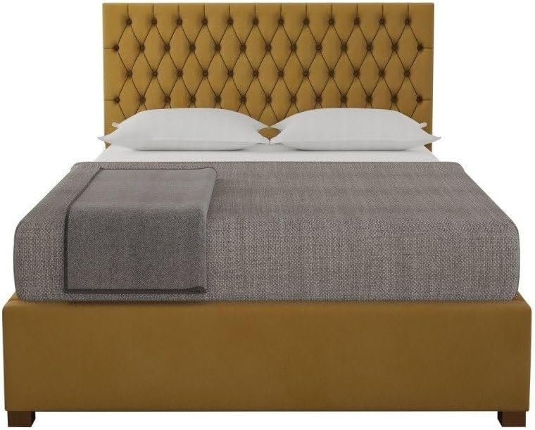 Zenith Dream King Size Ottoman Bed in Deep Mustard Velvet – Customizable Design for UAE Bedrooms