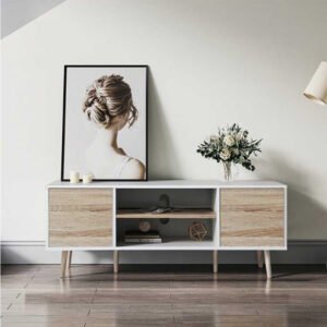 Carrington Mid-Century Modern TV Console – Wall-Mounted or Freestanding TV Unit with Storage, Includes Home Installation