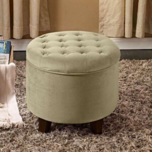 Carson Round Button-Tufted Ottoman – Upholstered Ottoman or Bench, Multi-Purpose Seating for Living Room or Bedroom