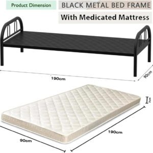 RESTI Single Bed with Mattress & Heavy Duty Metal Bed Frame for Bedroom, Home Living Room, Easy to Move, Black Metal Bedframe, Size 90×190 cm – Durable & Stylish” (With Mattress)