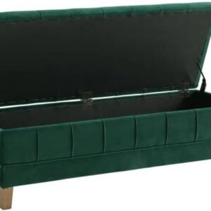 Comfynest Glam Velvet Rectangle Storage Ottoman – 52″ Wide Tufted Bench with Lift-Top in King/Queen Sizes (Evergreen)