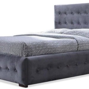 Serene Slumber Contemporary Button Tufted Grey Velvet Bed – Customizable Design for UAE Bedrooms