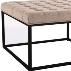 Square Button Tufted Ottoman – Upholstered Ottoman or Bench, Multi-Purpose Seating for Living Room or Bedroom