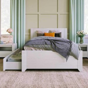 DreamWave 3-Pieces Wooden Bedroom Set With Twin Bed, Nightstand & Chest Drawer Off-White – Customizable Design for UAE Bedrooms