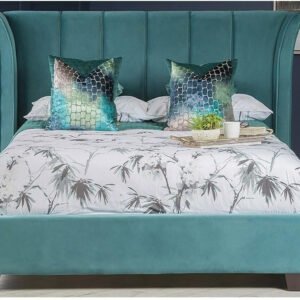 Dusk Dew Blue Channel Tufted Velvet Bed – Customizable Design for UAE Bedrooms